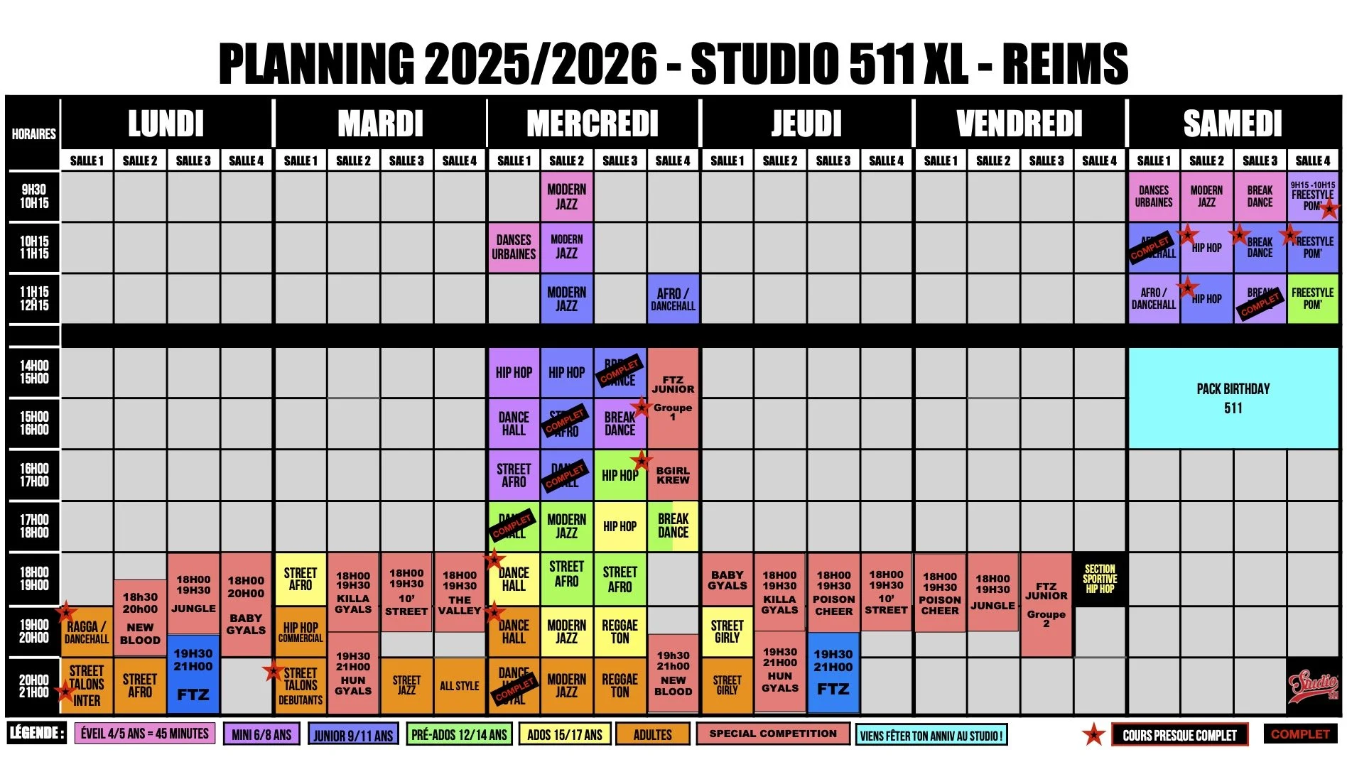Le Studio 511 est un lieu dynamique et animé de la ville de Reims, offrant une expérience unique aux amateurs de danse de tous les âges et de tous les horizons. Avec un effectif impressionnant de plus de 1300 élèves, le studio est devenu un lieu de rassemblement pour tous ceux qui cherchent à s'exprimer à travers différents styles de danse tels que la danse classique, jazz, hip-hop… et bien plus encore. L’équipe du Studio 511 est qualifiée et passionnée de danse, offrant un ensemble complet de services allant du coaching individuel aux cours en groupe en passant par des shows uniques. Nous avons réussi à construire une communauté de danseurs motivés et passionnés, qui continuent de croître chaque année.